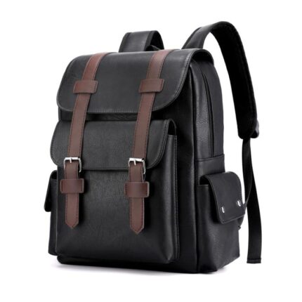 OUMANTU 975 PU Leather Large-capacity Travel Laptop Backpack – Black
