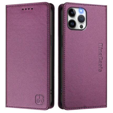 For iPhone 12 / 12 Pro RC01 Dual-Folded Magnetic Suction RFID Leather Phone Case(Violet)