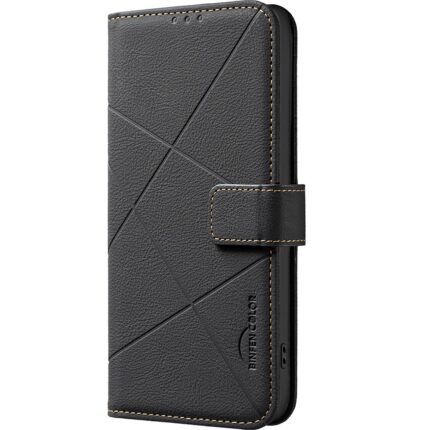 For iPhone 12 / 12 Pro Geometric Pattern RFID Leather Phone Case(Black)