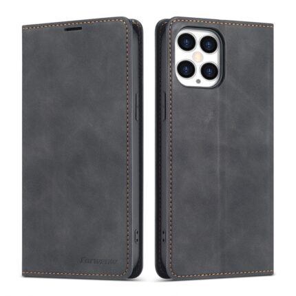 For iPhone 12 mini Forwenw F1 Series Matte Strong Magnetism Horizontal Flip Leather Case with Holder & Card Slots & Wallet & Photo Frame(Black)