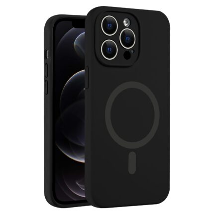 For iPhone 12 Pro Fine Hole Pure Color Liquid Silicone MagSafe Phone Case(Black)
