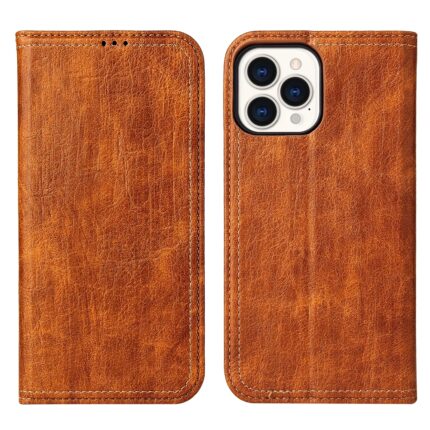 For iPhone 13 Pro Fierre Shann PU Leather Texture Horizontal Flip Leather Case with Holder & Card Slots & Wallet (Brown)