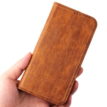 For iPhone 13 Pro Fierre Shann Retro Tree Bark Texture PU Magnetic Horizontal Flip Leather Case with Holder & Card Slots & Wallet (Brown)