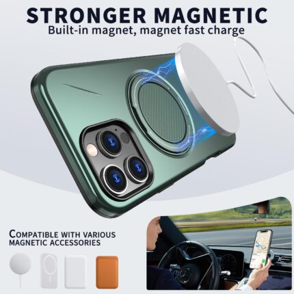 For iPhone 13 Pro Kalebol Magnetic MagSafe Rotation Holder PC Phone Case(Grey Green)