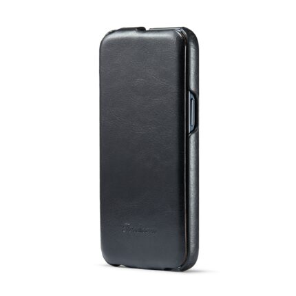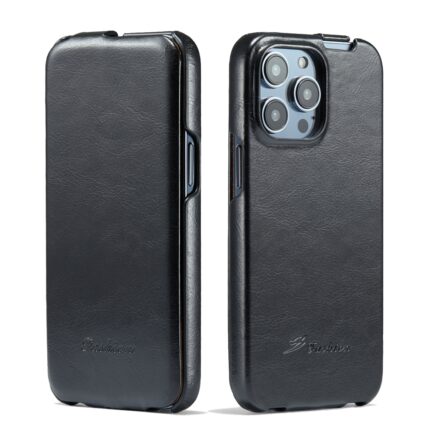 For iPhone 14 Pro Fierre Shann Oil Wax Texture Vertical Flip PU Phone Case(Black)