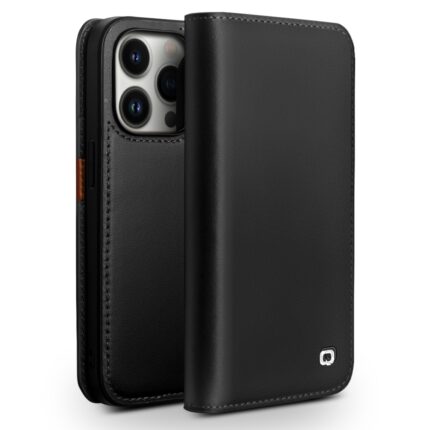 For iPhone 14 Pro Max QIALINO Business Horizontal Flip PU Phone Case (Black)