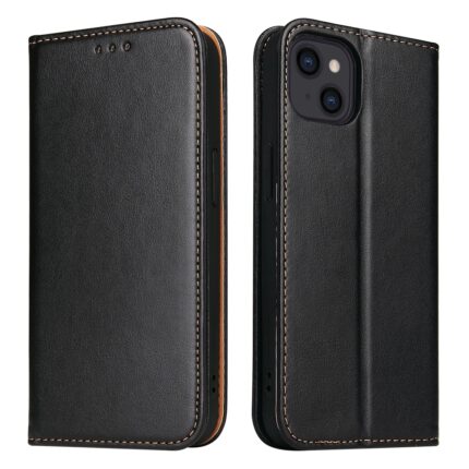 For iPhone 15 Plus Fierre Shann PU Genuine Leather Texture Phone Case(Black)