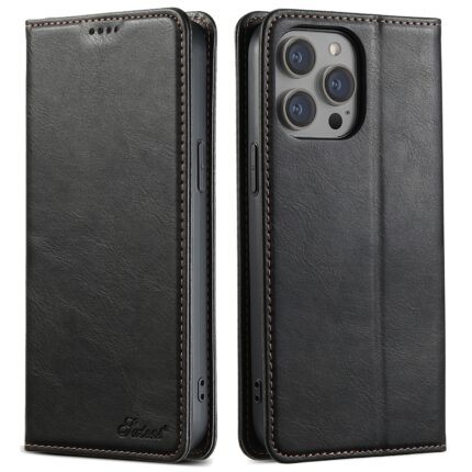 For iPhone 15 Pro Suteni J02 Oil Wax Wallet Leather Phone Case(Black)