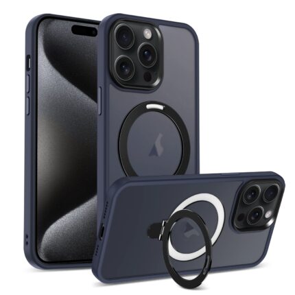 For iPhone 15 Pro Max Skin-feel MagSafe Holder PC Hybrid TPU Phone Case(Dark Blue)
