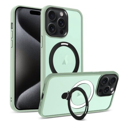 For iPhone 15 Pro Max Skin-feel MagSafe Holder PC Hybrid TPU Phone Case(Matcha Green)