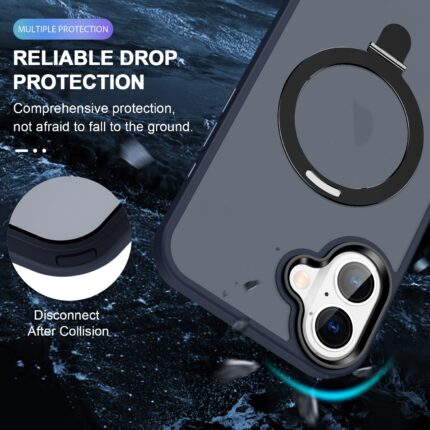 For iPhone 16 Skin-feel MagSafe Holder PC Hybrid TPU Phone Case(Dark Blue)
