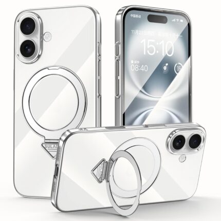 For iPhone 16 SULADA Electroplated Transparent MagSafe Holder Phone Case(Silver)