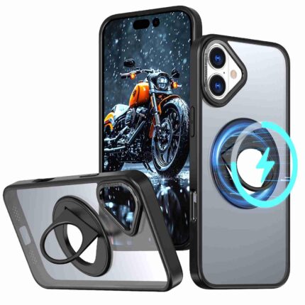 For iPhone 16 Rotating Ring Magnetic Holder Phone Case(Black)