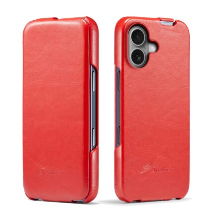 For iPhone 16 Plus Fierre Shann 64 Texture Vertical Flip PU Leather Phone Case(Red)