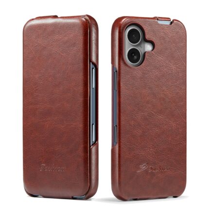 For iPhone 16 Plus Fierre Shann 64 Texture Vertical Flip PU Leather Phone Case(Brown)