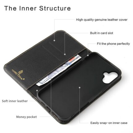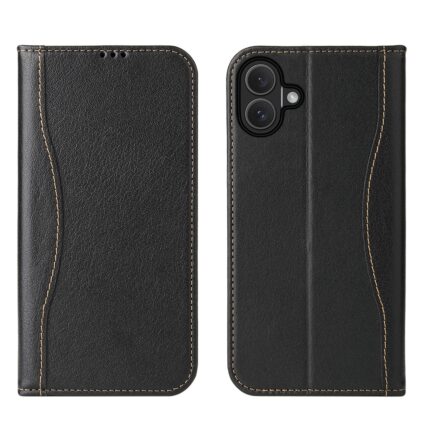 For iPhone 16 Plus Fierre Shann Top Layer Cowhide Business Magnetic Leather Phone Case(Black)
