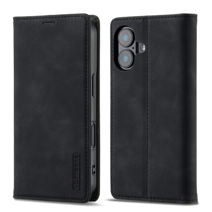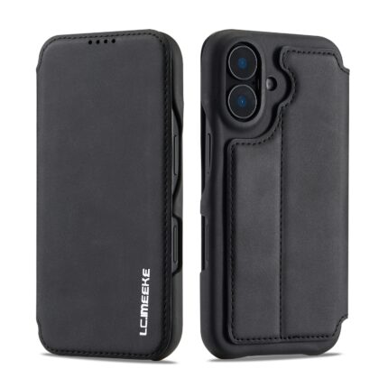 For iPhone 16 Plus LC.IMEEKE Strong Magnetism Microfiber Leather Phone Case(Black)