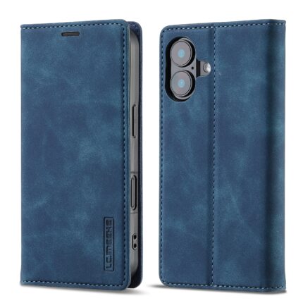 For iPhone 16 Plus LC.IMEEKE Strong Magnetism Microfiber Leather Phone Case(Blue)