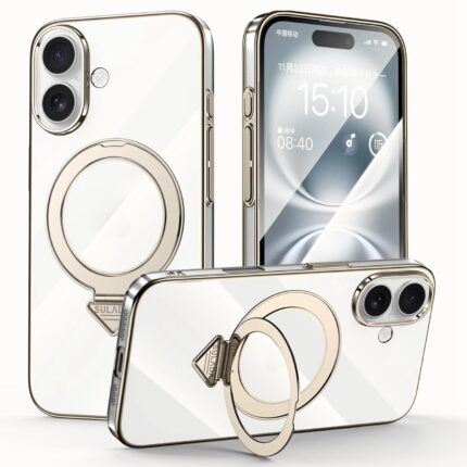 For iPhone 16 Plus SULADA Electroplated Transparent MagSafe Holder Phone Case(Gold)