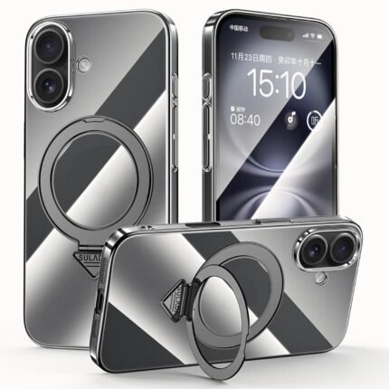 For iPhone 16 Plus SULADA Electroplated Transparent MagSafe Holder Phone Case(Black)