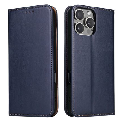 For iPhone 16 Pro Fierre Shann PU Genuine Leather Texture Phone Case(Blue)