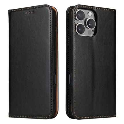 For iPhone 16 Pro Fierre Shann Cowhide Leather Flip Leather Phone Case(Black)