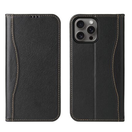 For iPhone 16 Pro Max Fierre Shann Cowhide Leather Flip Leather Phone Case(Black)