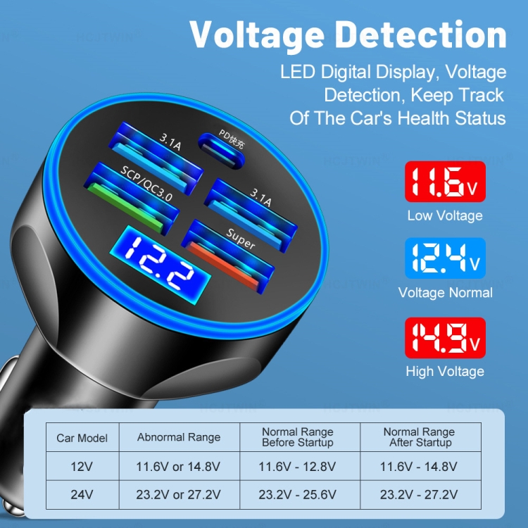 2. Output: Blue USB 5V 3.1A, Orange USB 5V 3.6A 9V/12V 1.5A supports ultra-fast charging, Green USB 5V 3.1A, PD interface 5V 3.1A