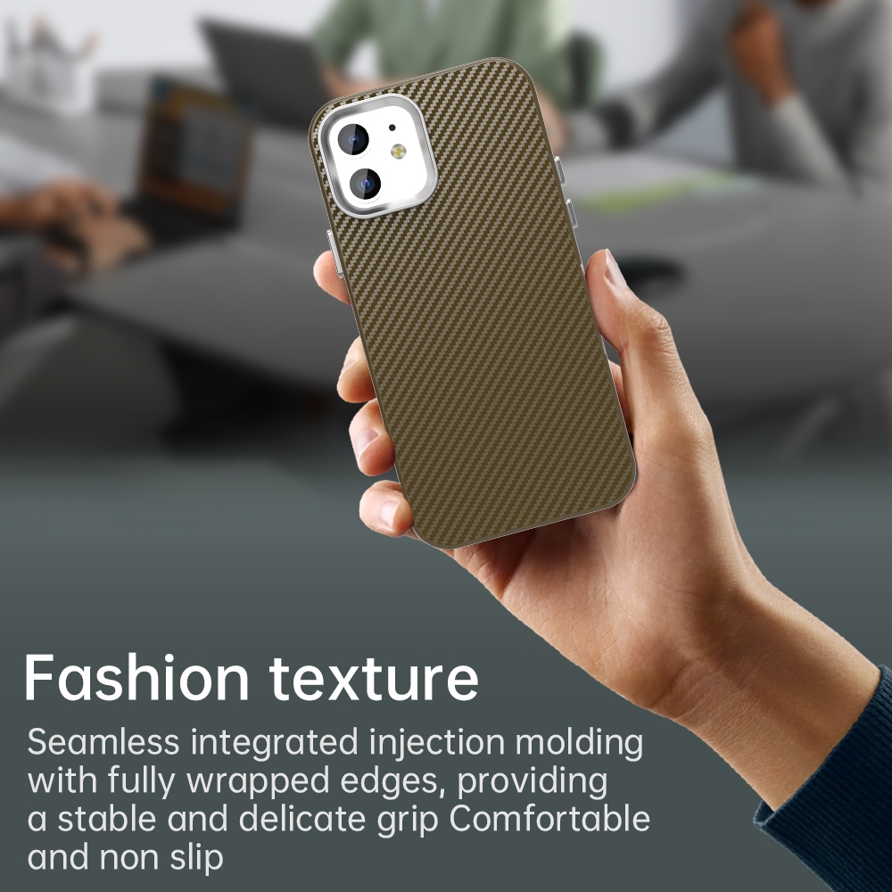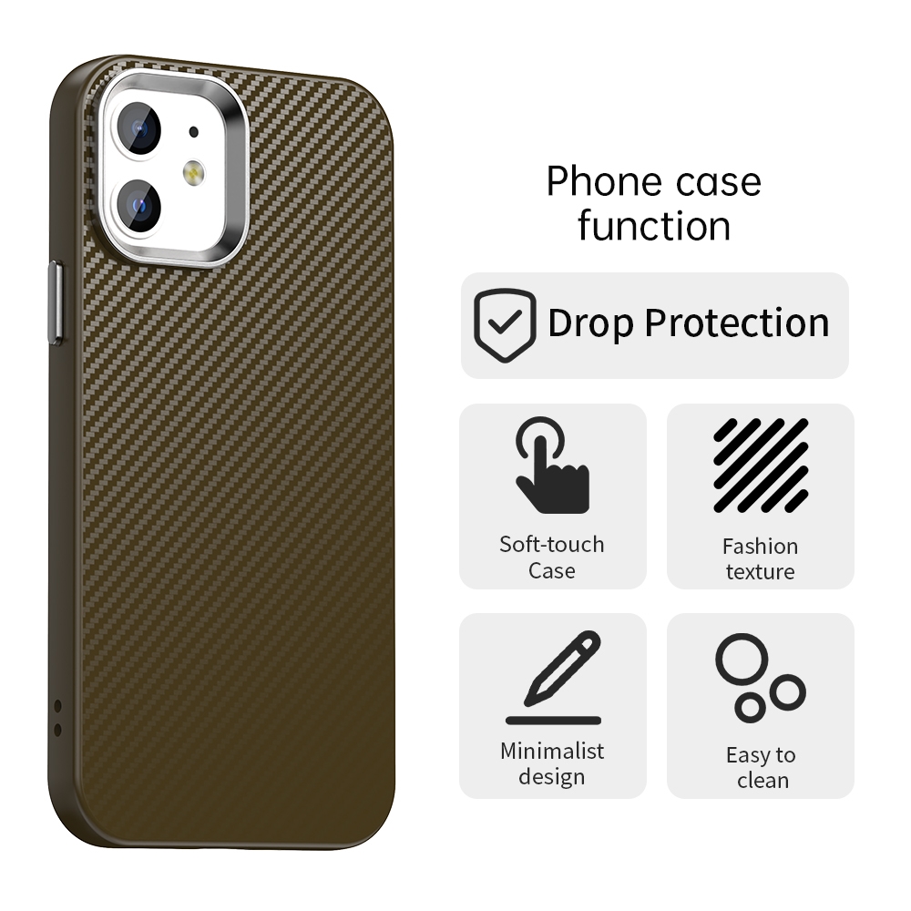 For iPhone 12 Carbon Fiber Series IMD Phone Case(Brown)