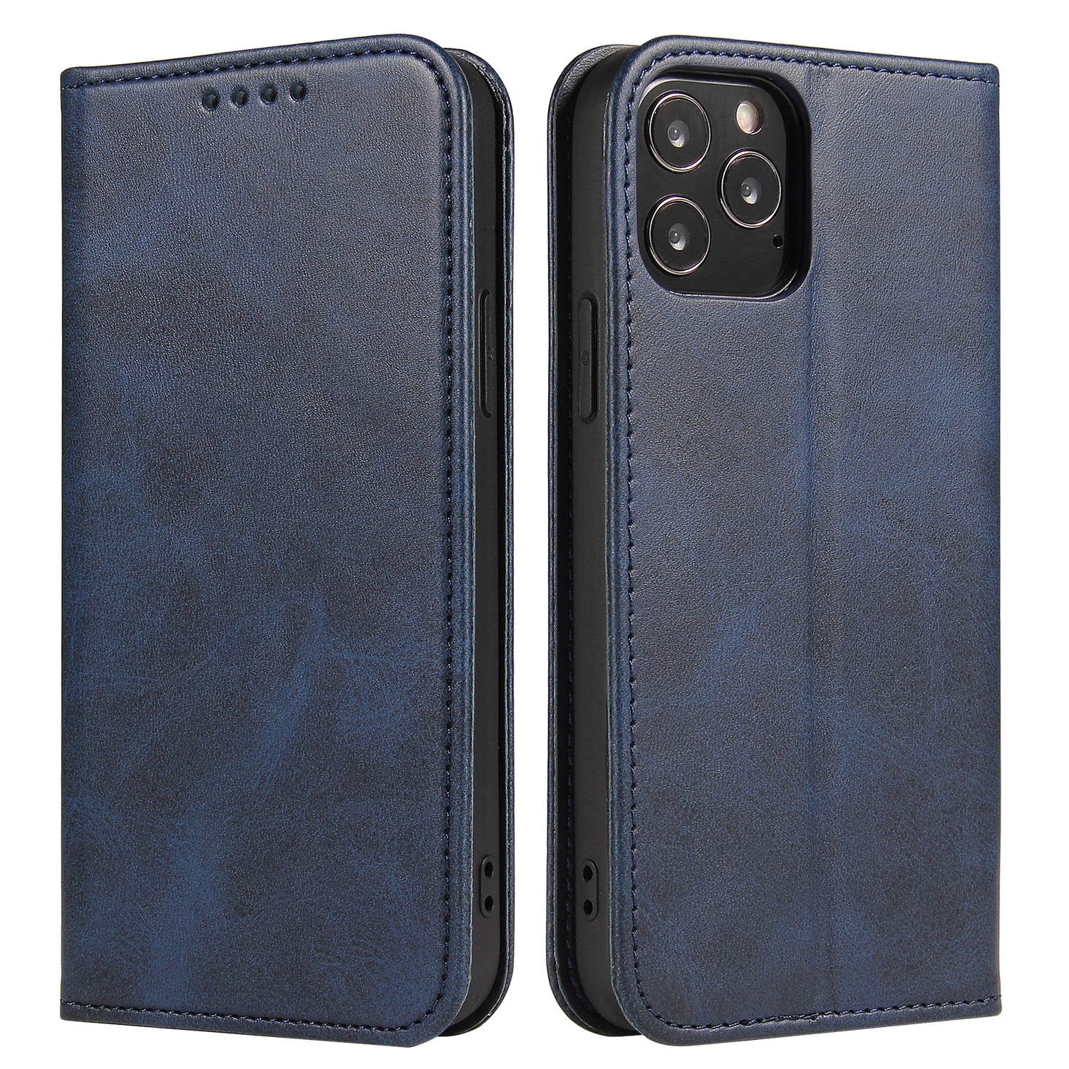 For iPhone 12 mini Calf Texture Magnetic Horizontal Flip Leather Case with Holder & Card Slots & Wallet (Blue)