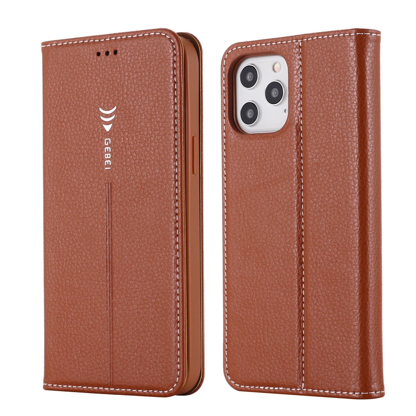 For iPhone 12 mini GEBEI PU+TPU Horizontal Flip Protective Case with Holder & Card Slots (Brown)