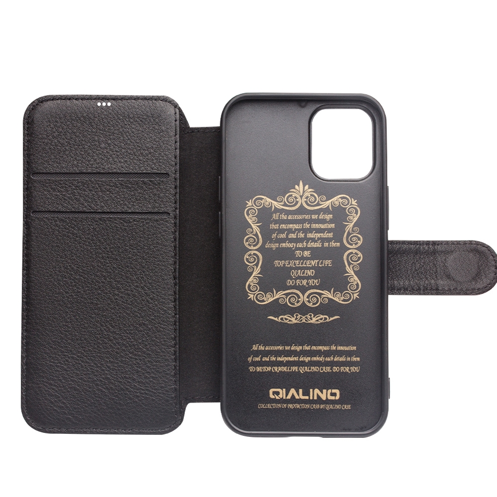 For iPhone 12 mini QIALINO Business Magnetic Horizontal Flip Leather Case with Card Slots & Wallet (Black)