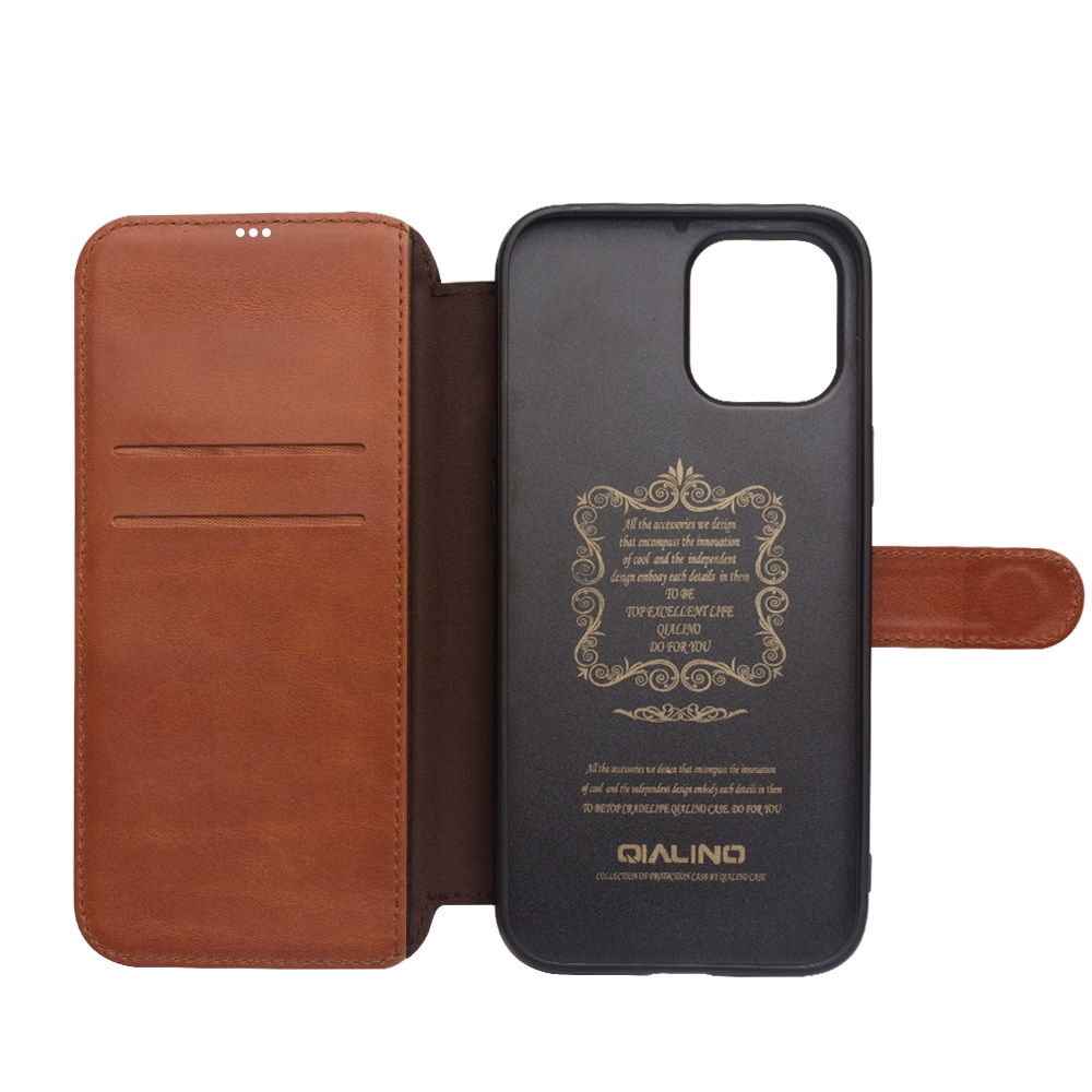 For iPhone 12 mini QIALINO Business Magnetic Horizontal Flip Leather Case with Card Slots & Wallet (Light Brown)