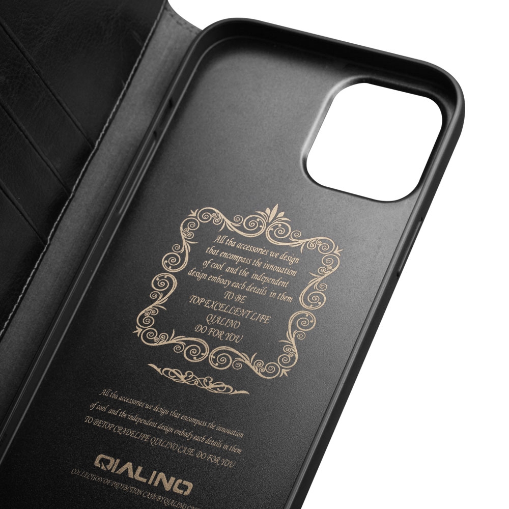 For iPhone 12 mini QIALINO Horizontal Flip Leather Case with Holder & Card Slots & Wallet (Black)