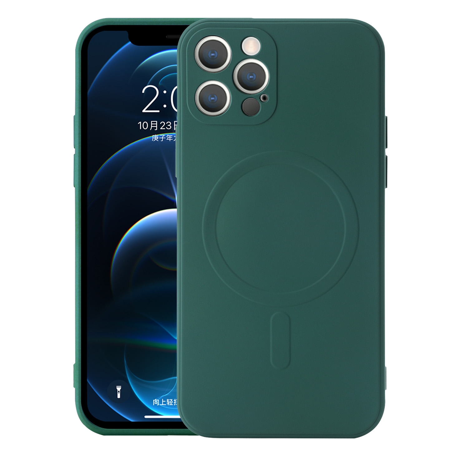For iPhone 12 Pro Liquid Silicone Full Coverage Shockproof Magsafe Case(Deep Green)