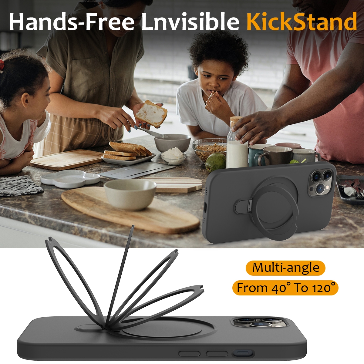 For iPhone 12 Pro Liquid Silicone MagSafe Magnetic Phone Case with Ring Holder(Carbon Black)