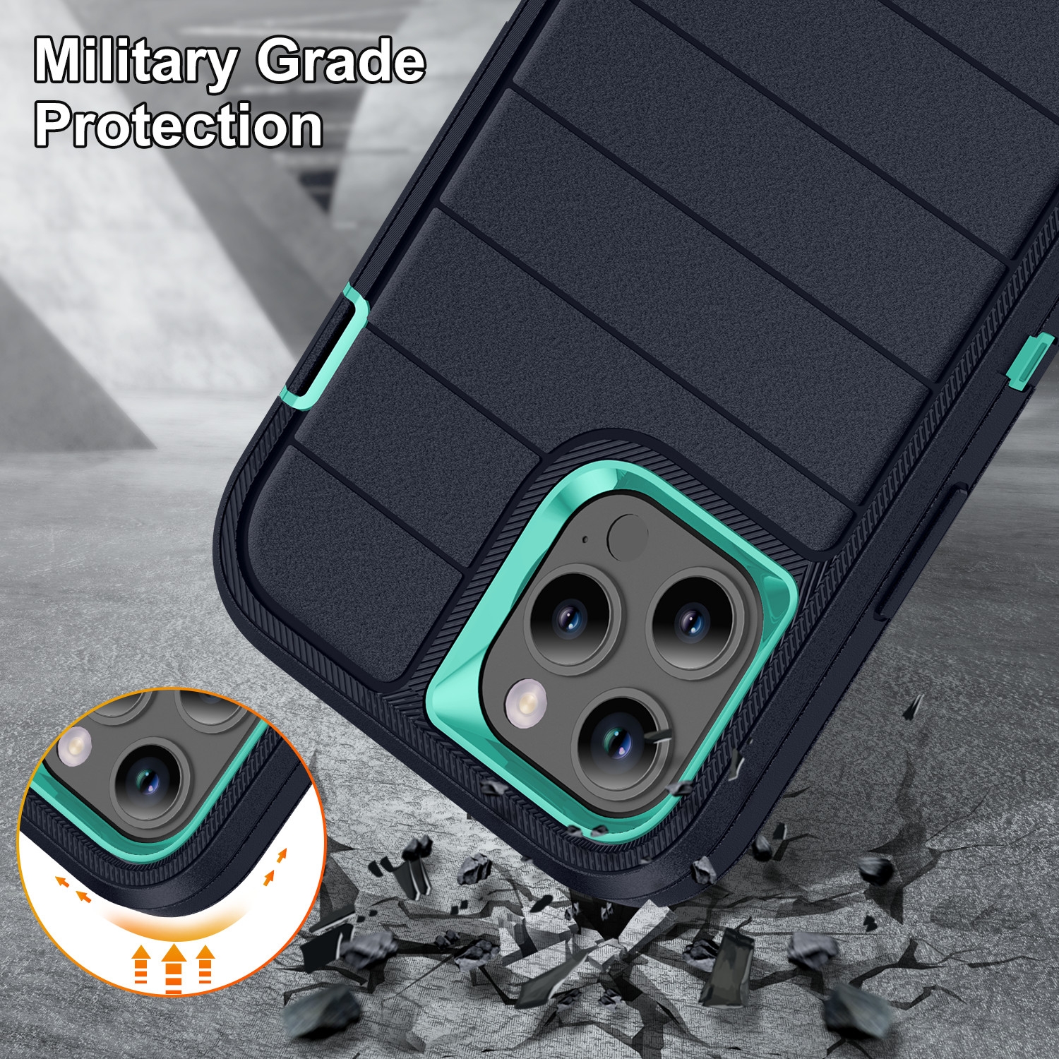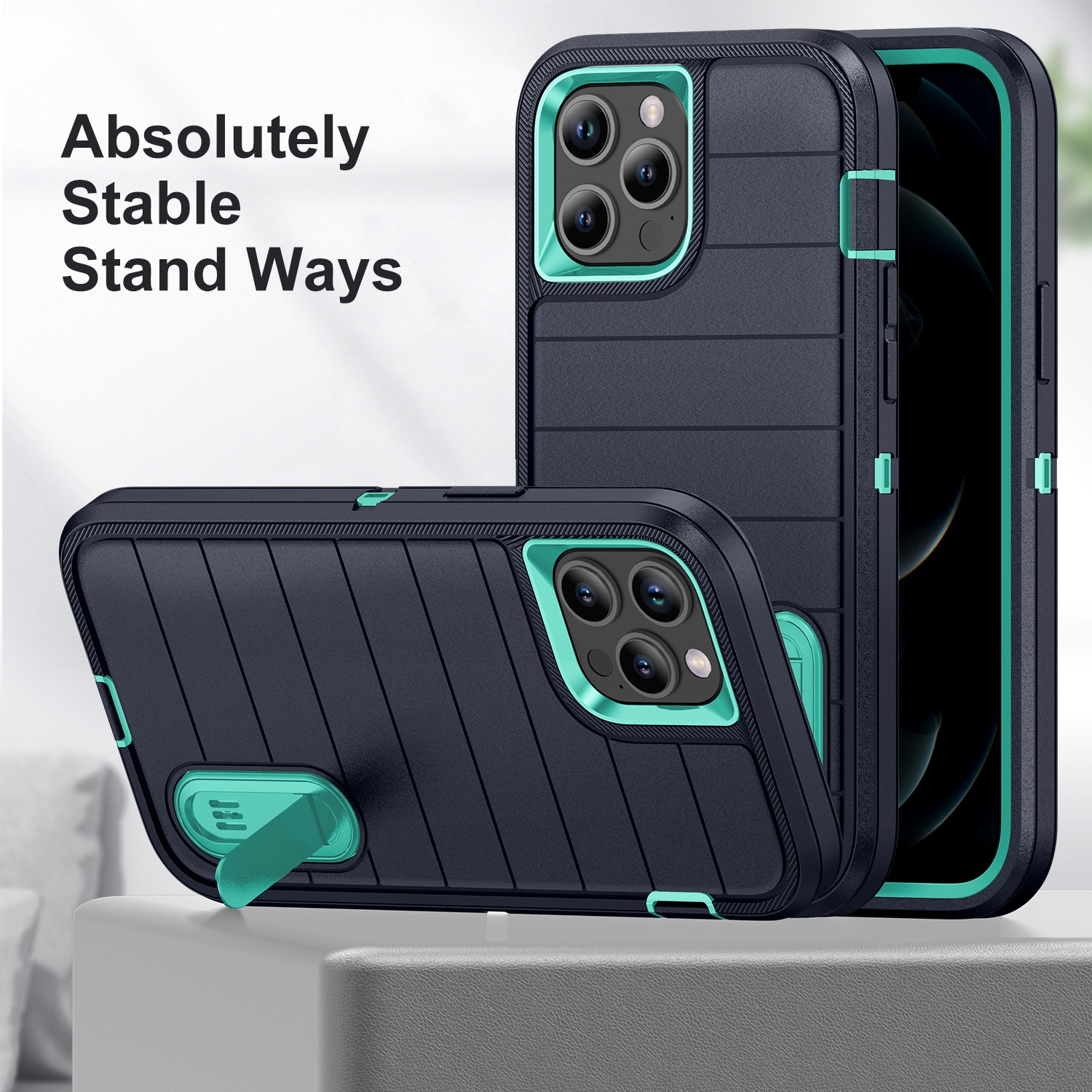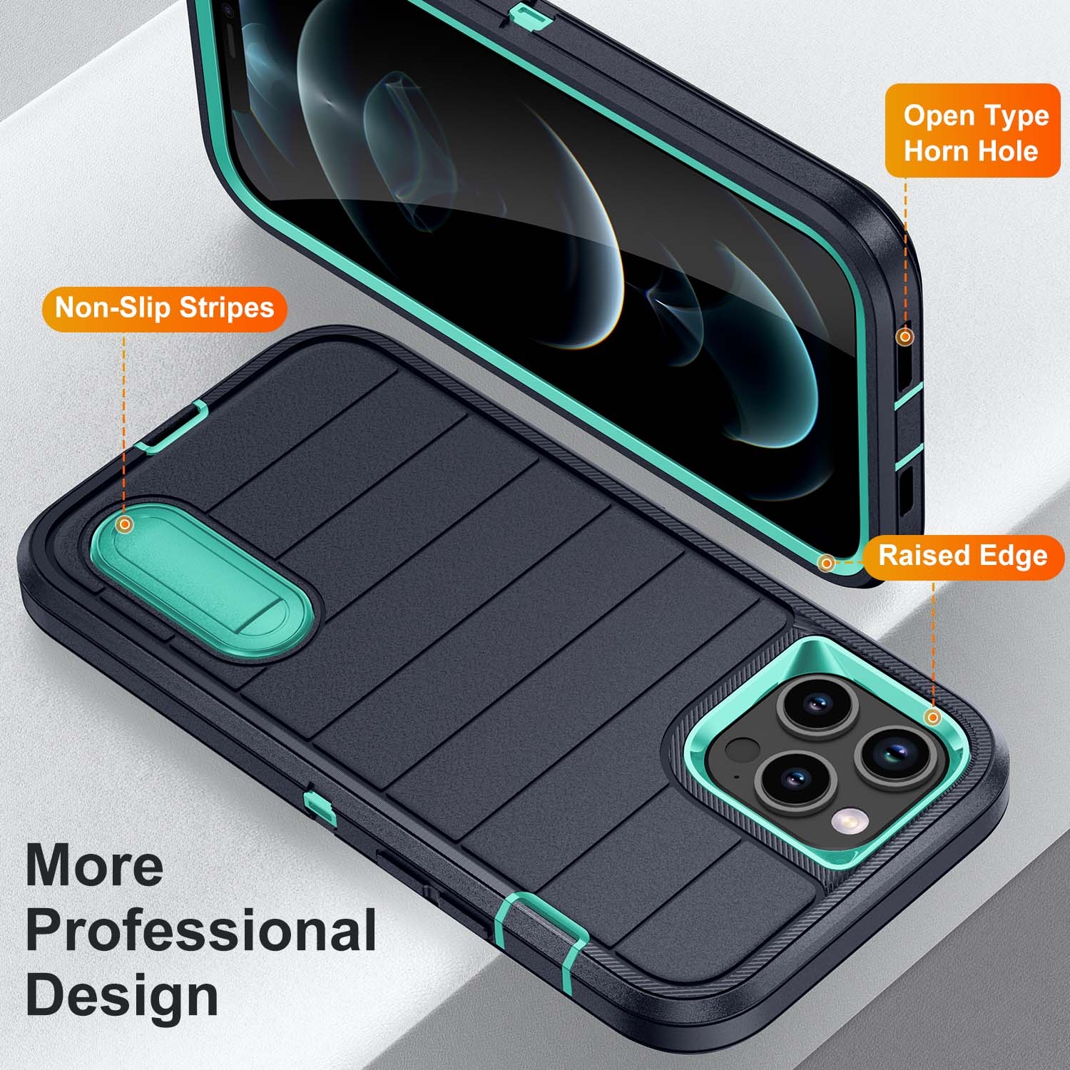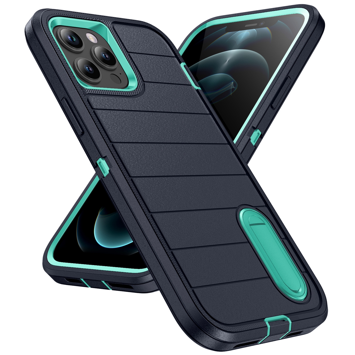 For iPhone 12 Pro Max Defender Gen2 Rugged PC + Silicone Phone Case with Holder(Dark Blue+Cyan)