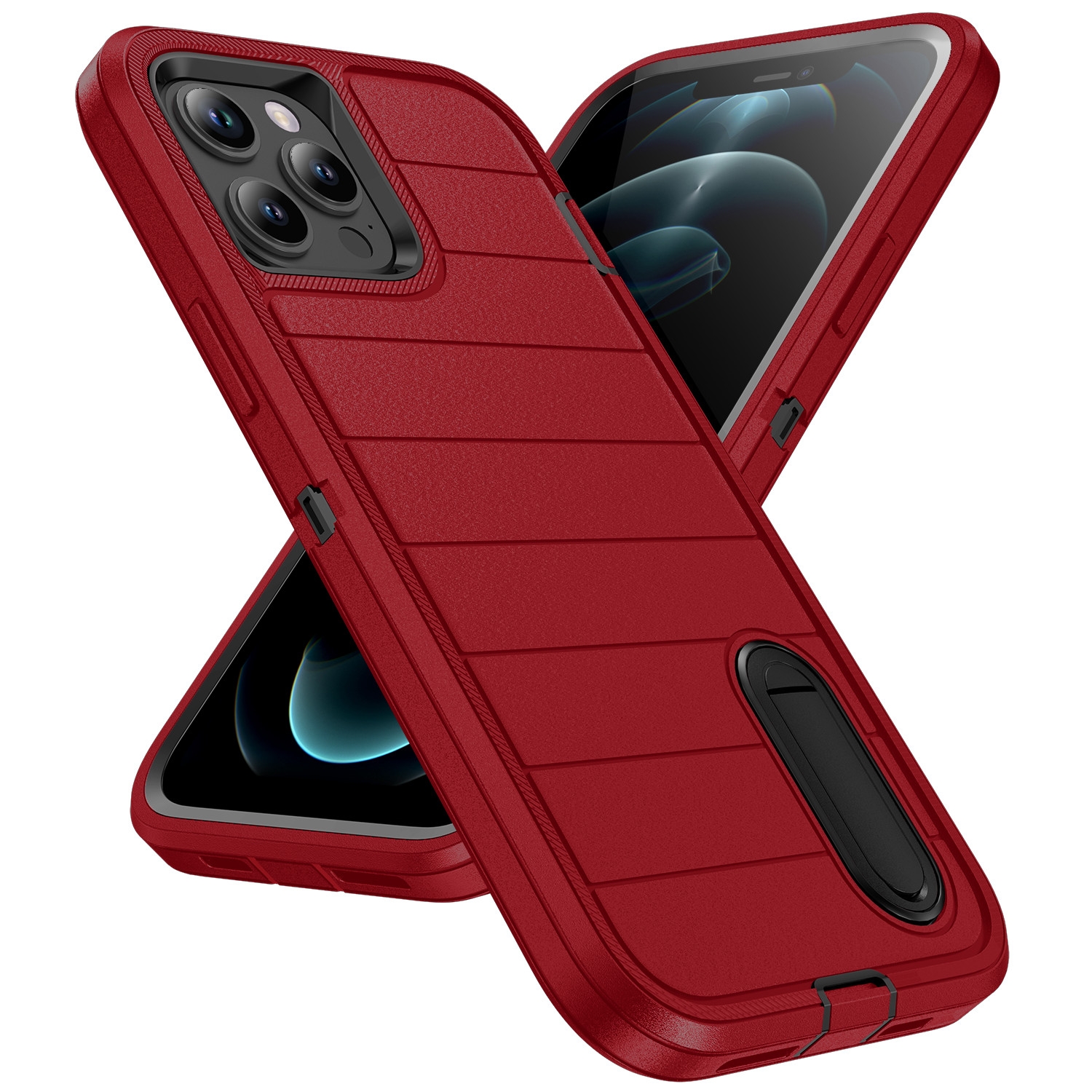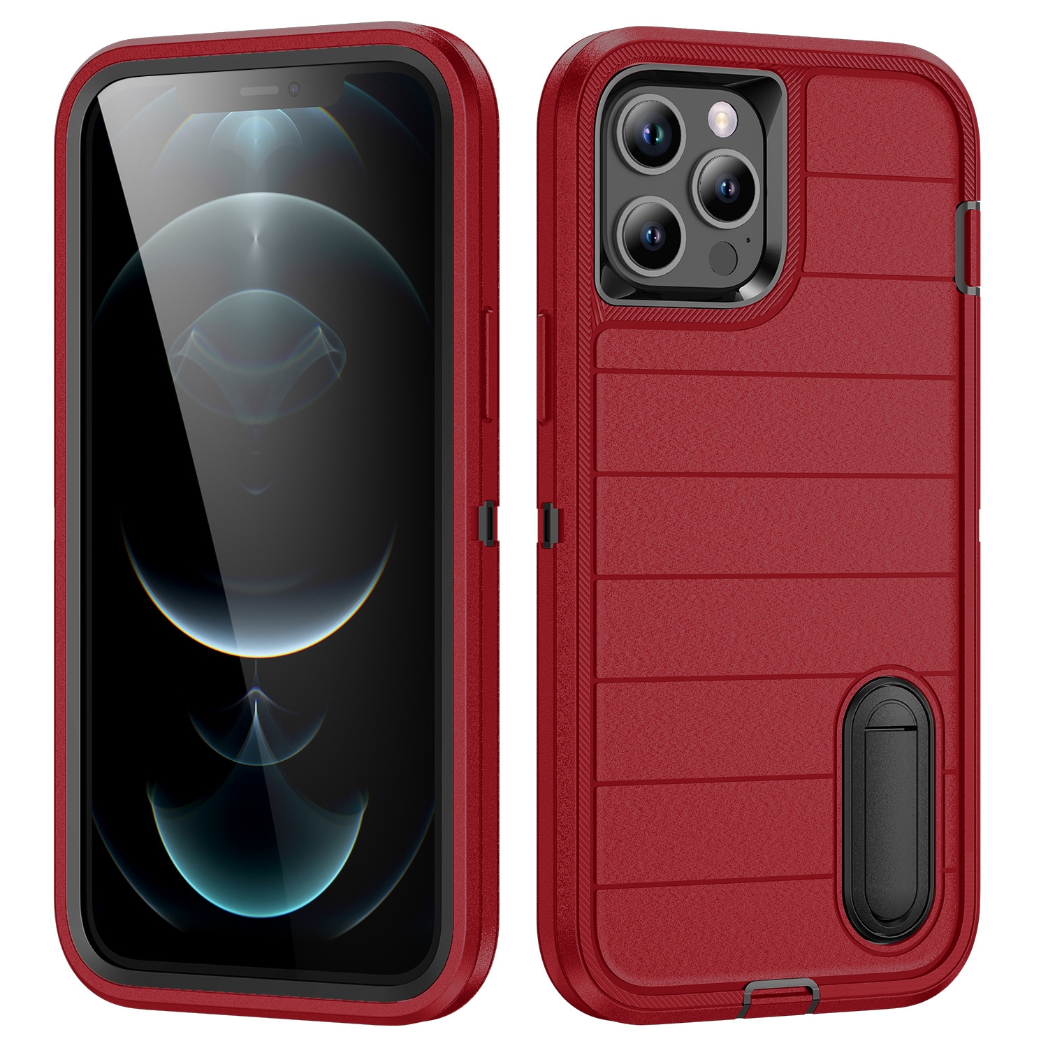 For iPhone 12 Pro Max Defender Gen2 Rugged PC + Silicone Phone Case with Holder(Red+Black)