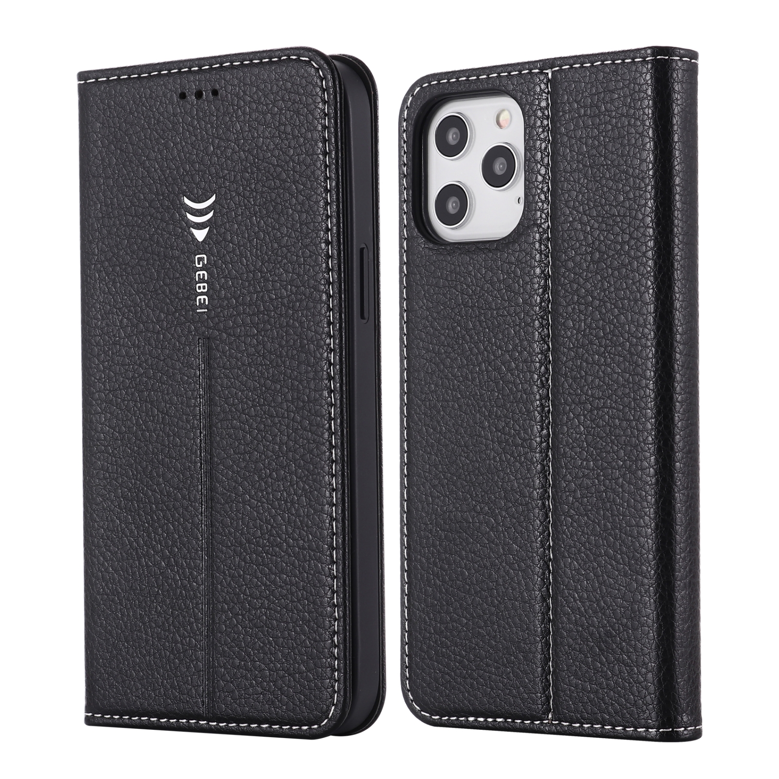 For iPhone 12 Pro Max GEBEI PU+TPU Horizontal Flip Protective Case with Holder & Card Slots(Black)