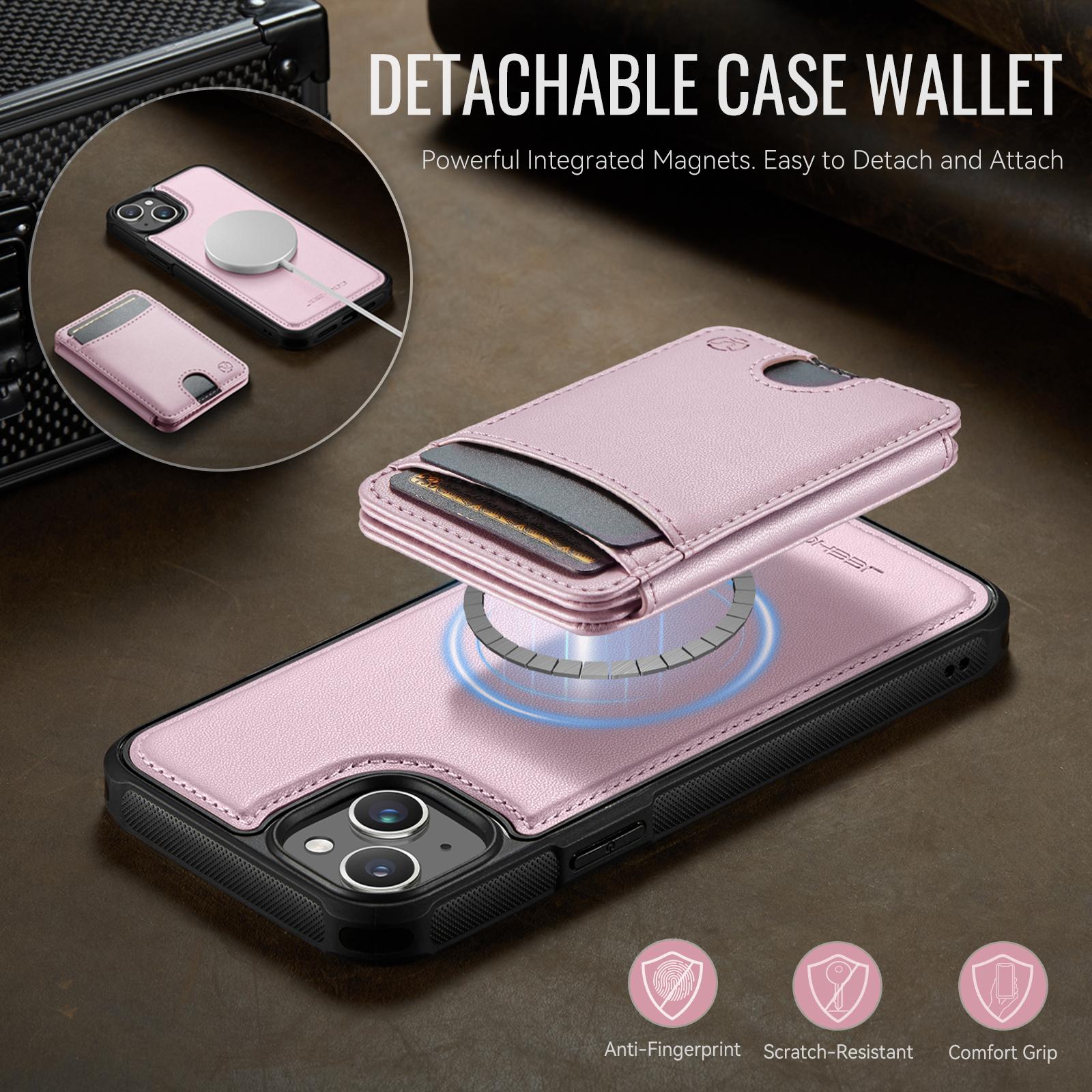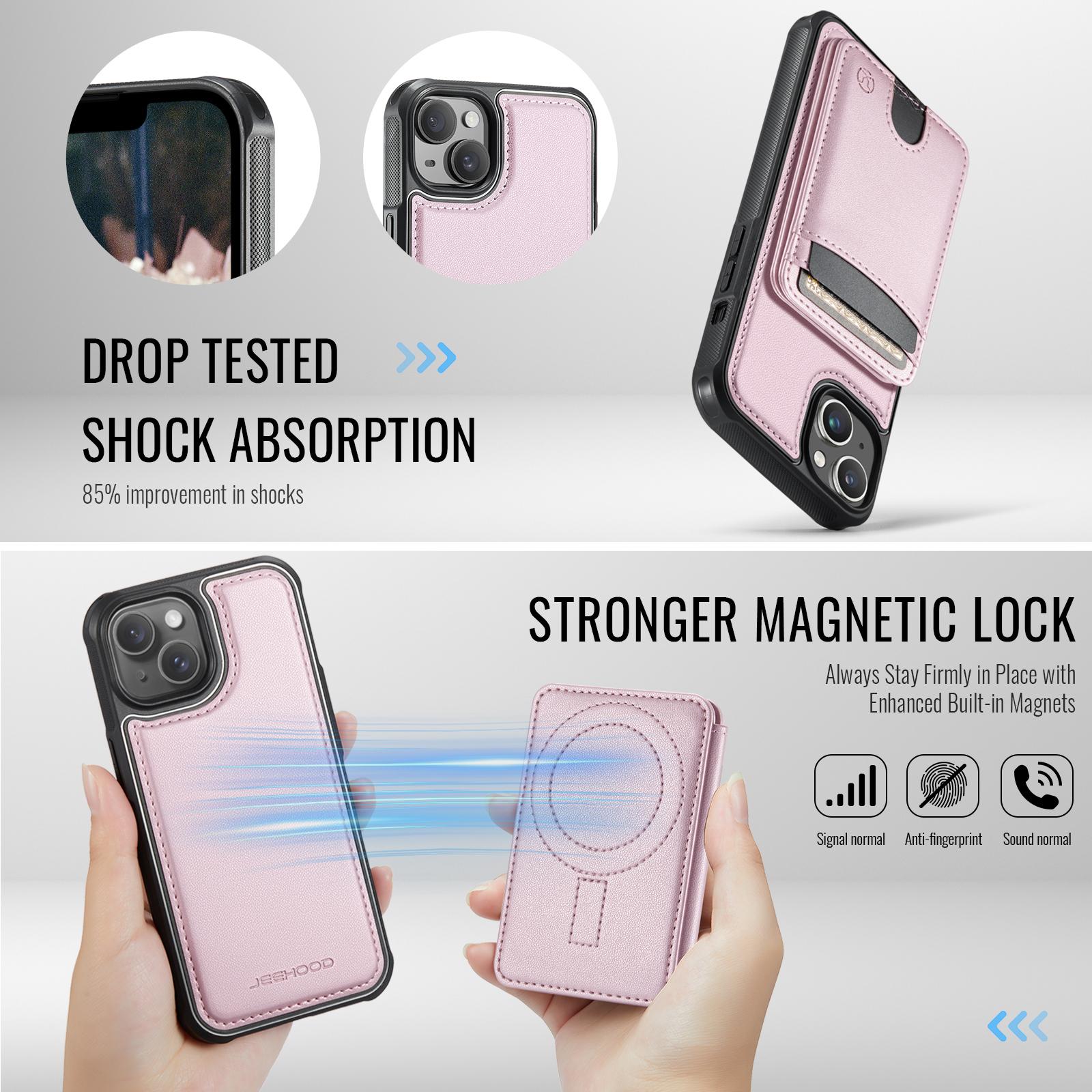 For iPhone 13 JEEHOOD J10 Flip Card Bag MagSafe Split RFID Leather Phone Case(Pink)