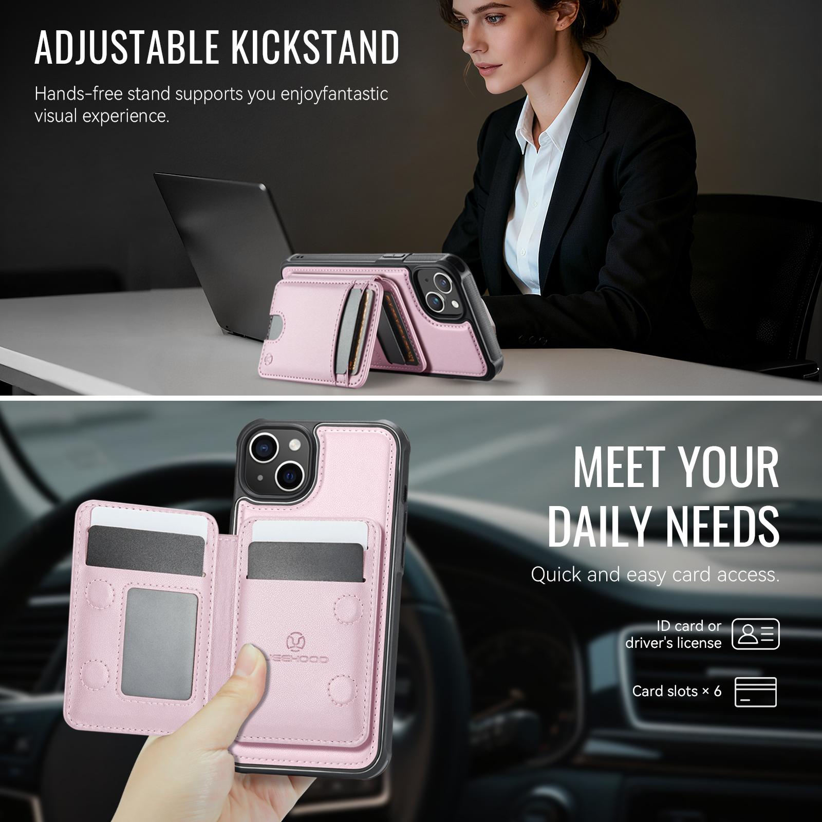 Be the first to review “For iPhone 13 JEEHOOD J10 Flip Card Bag MagSafe Split RFID Leather Phone Case(Pink)”