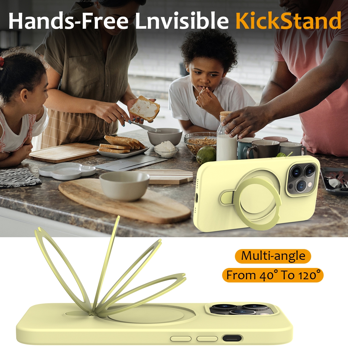 For iPhone 13 Pro Liquid Silicone MagSafe Magnetic Phone Case with Ring Holder(Yellow)