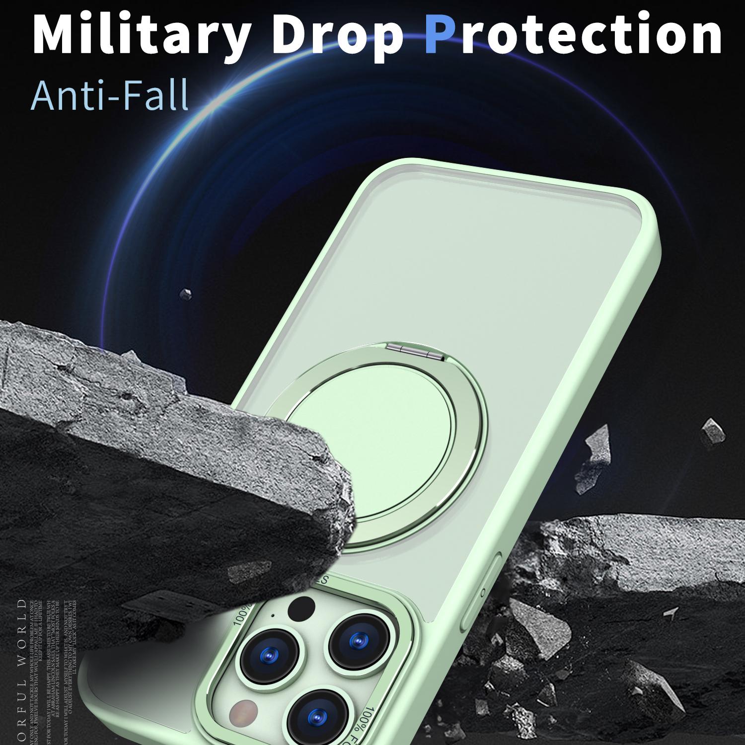For iPhone 13 Pro Max Kalebol 360-degree Rotating MagSafe Magnetic Holder Phone Case(Avocado Green)