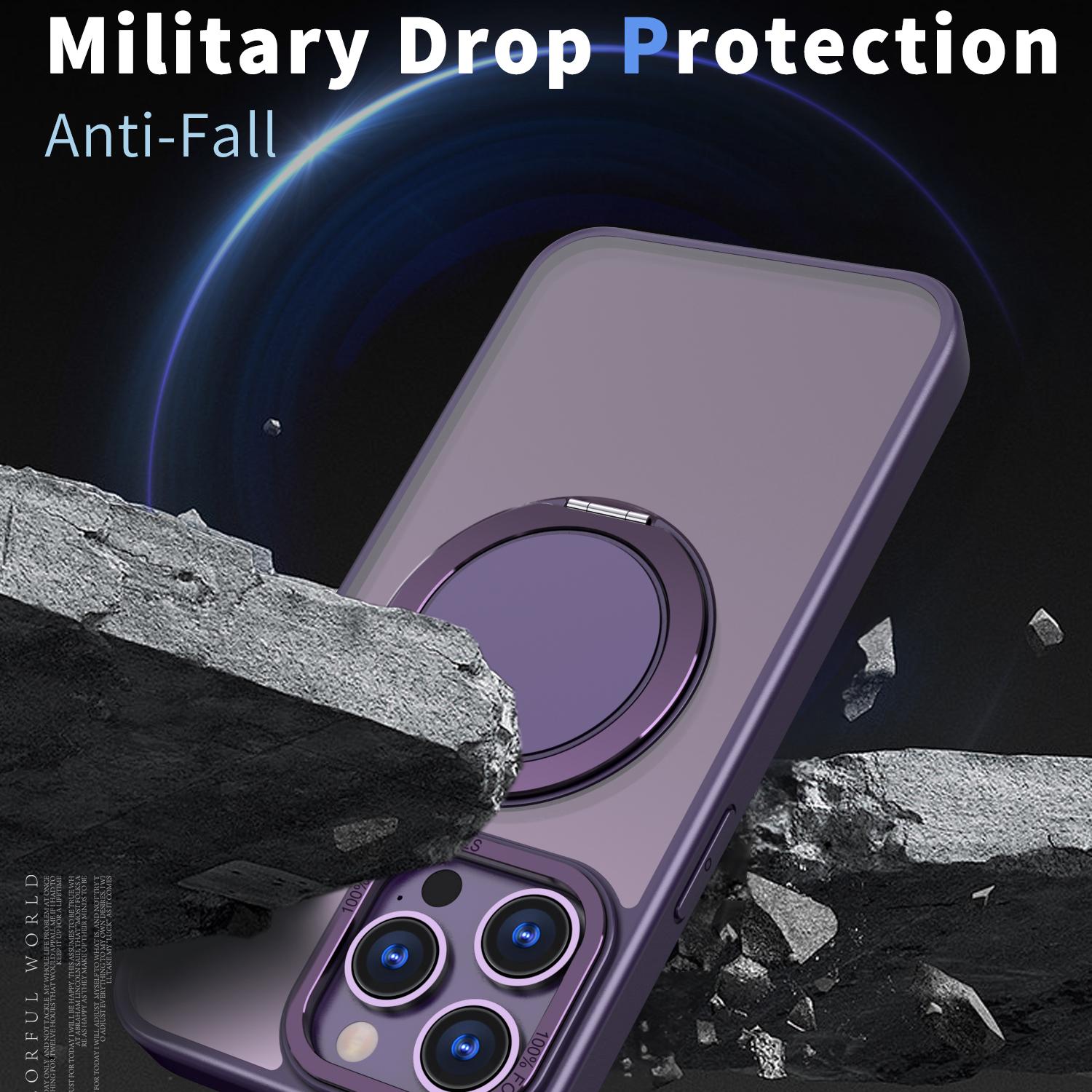 For iPhone 13 Pro Max Kalebol 360-degree Rotating MagSafe Magnetic Holder Phone Case(Purple)