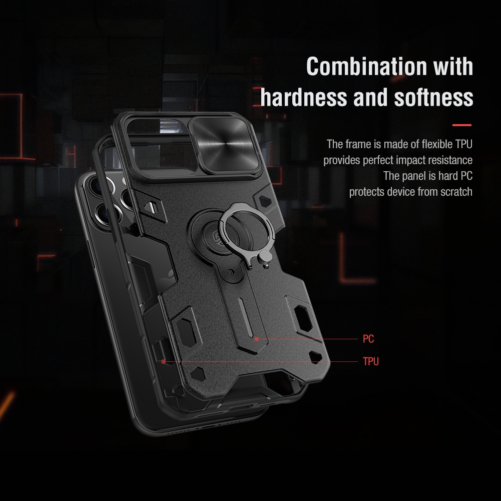 For iPhone 13 Pro Max NILLKIN Shockproof CamShield Armor Protective Case with Invisible Ring Holder (Blue)