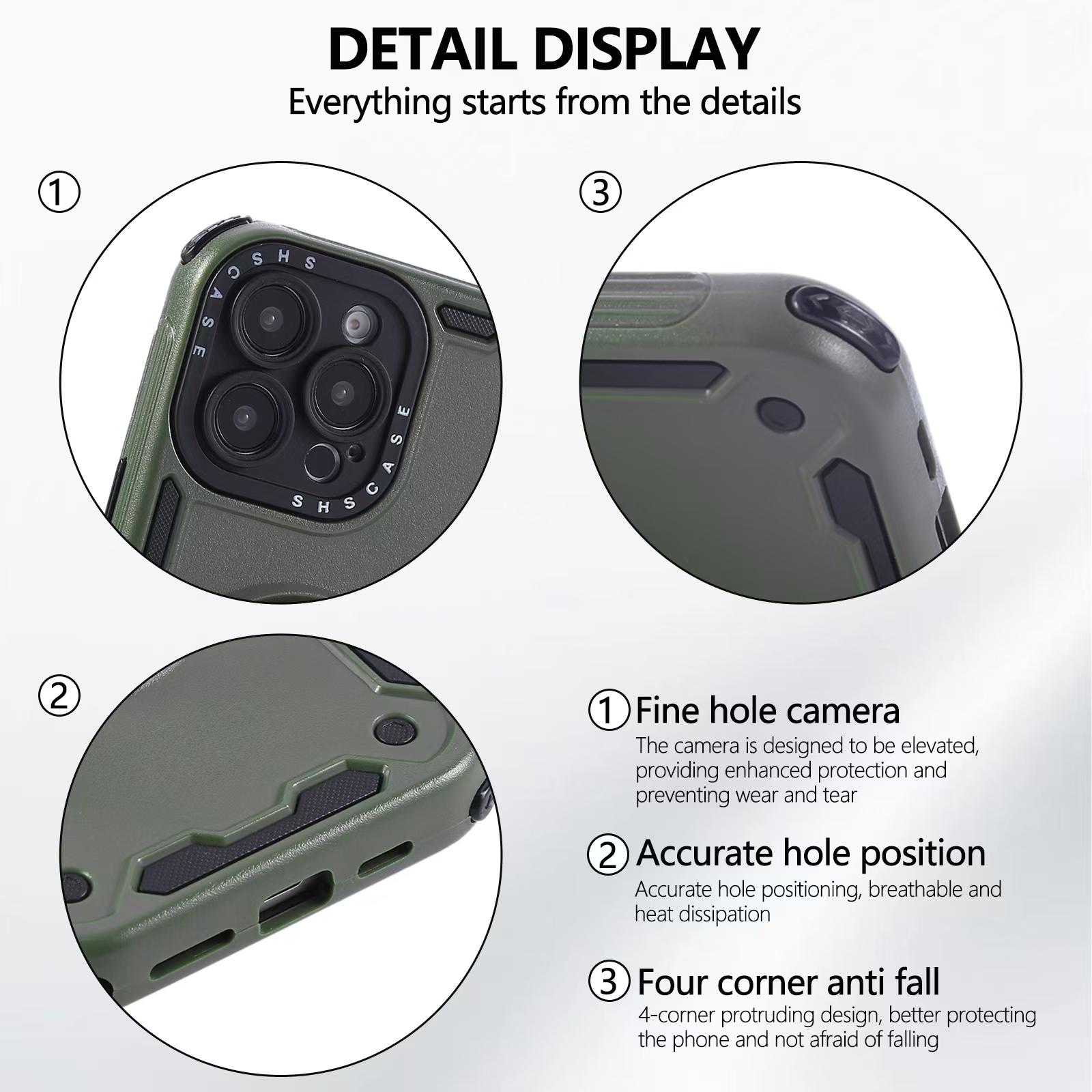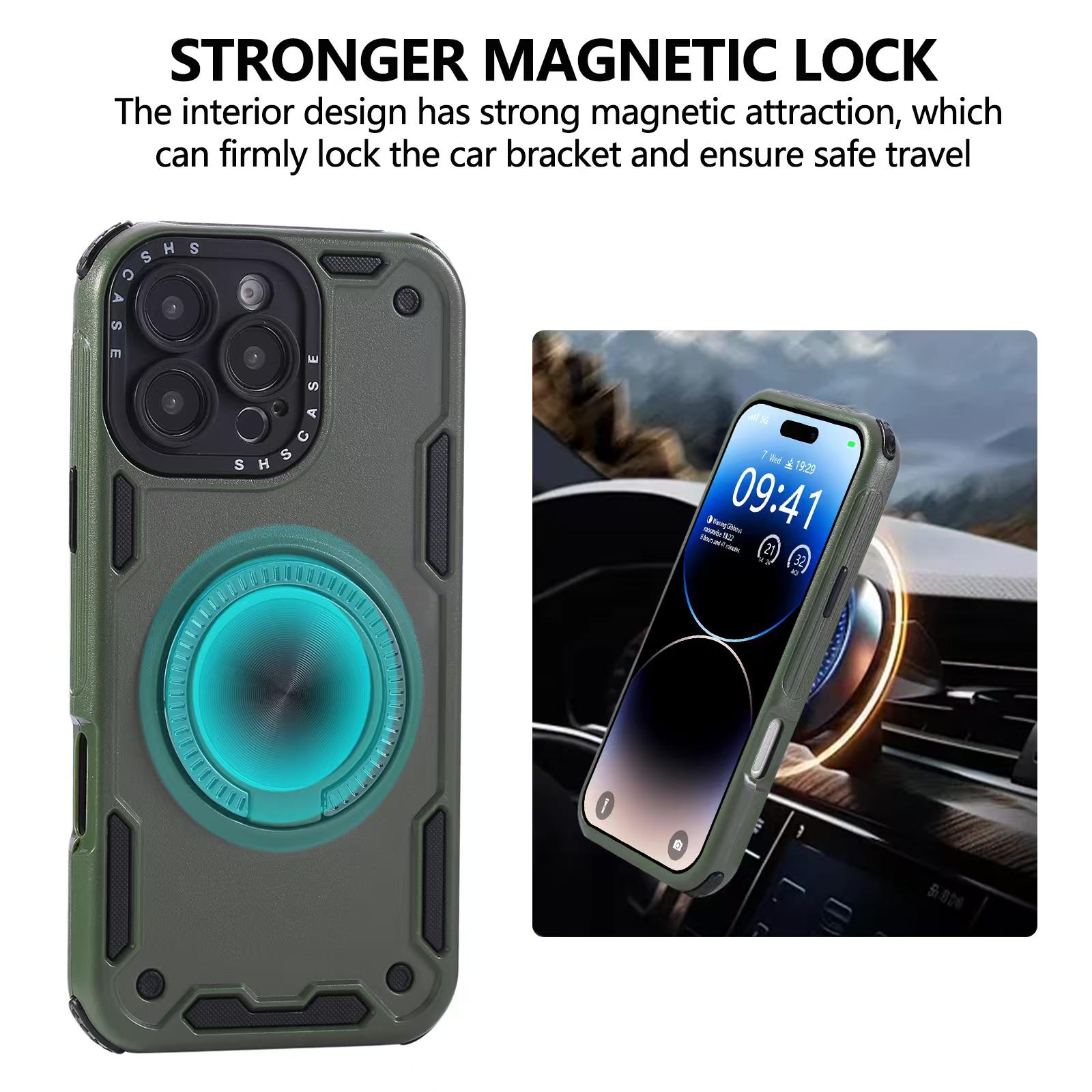 For iPhone 13 Pro Max Three-core Mecha 360 Degree Rotation Magnetic Holder Phone Case(Army Green)
