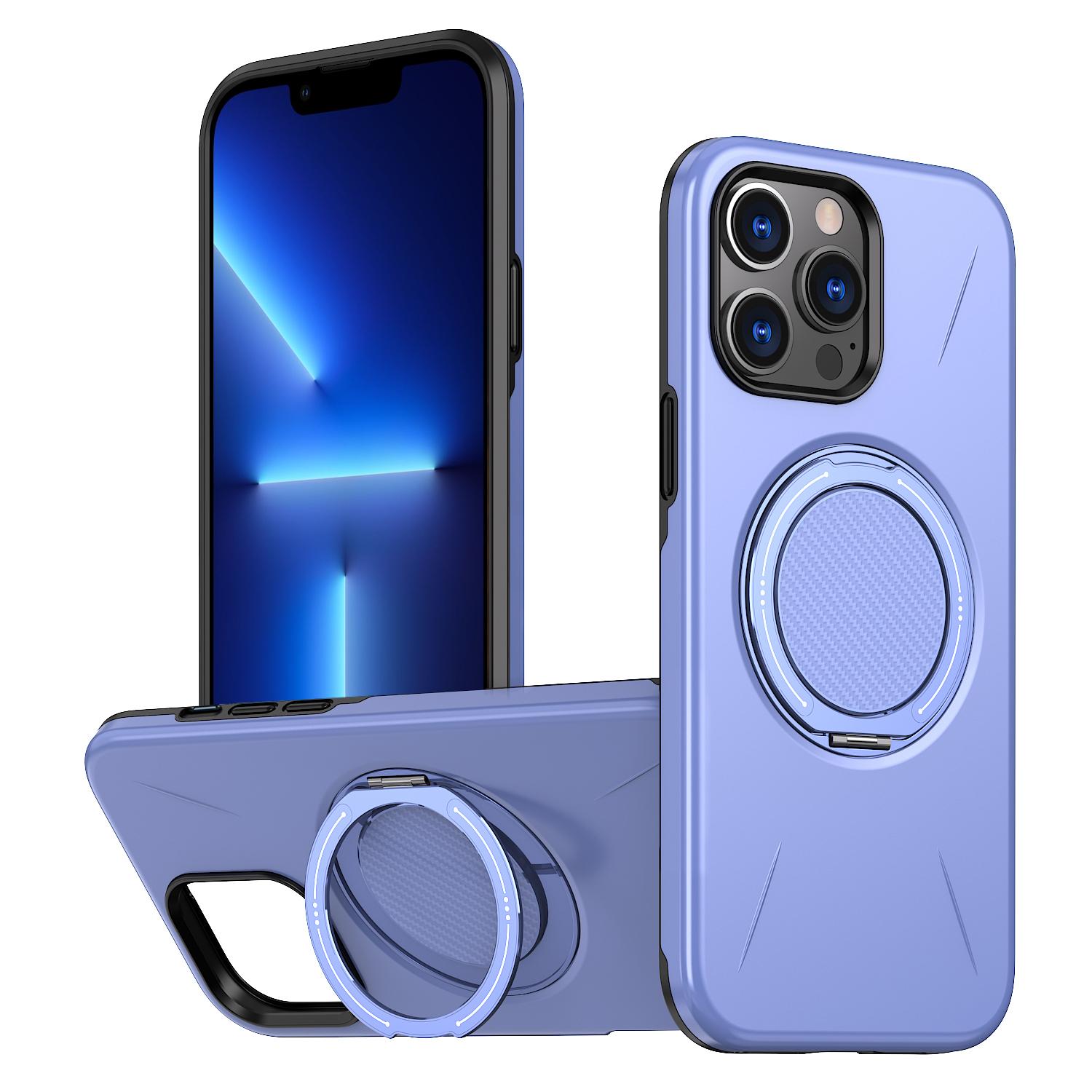 For iPhone 13 Pro Metal Rotation Holder MagSafe TPU Hybrid PC Phone Case(Purple)