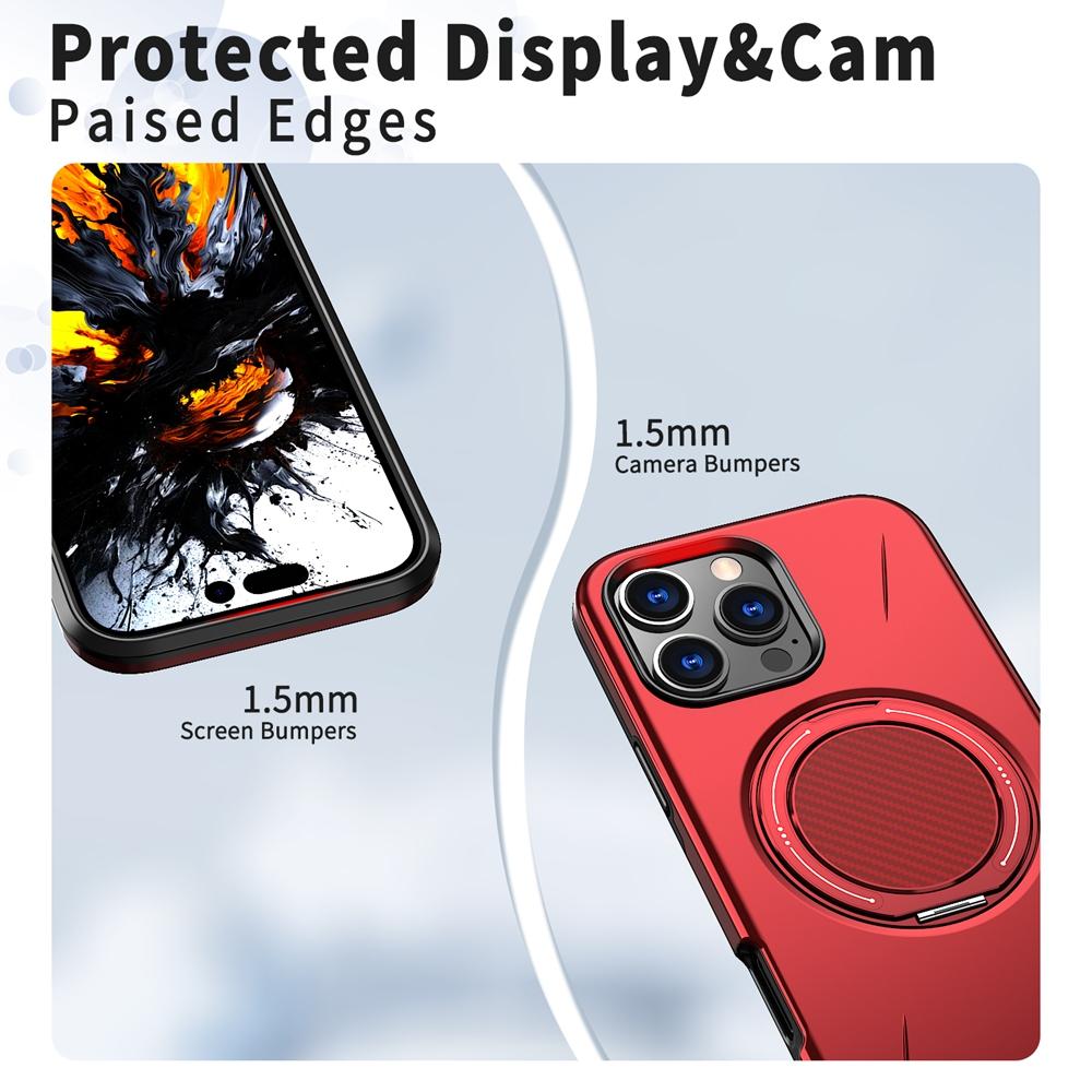 For iPhone 13 Pro Metal Rotation Holder MagSafe TPU Hybrid PC Phone Case(Red)