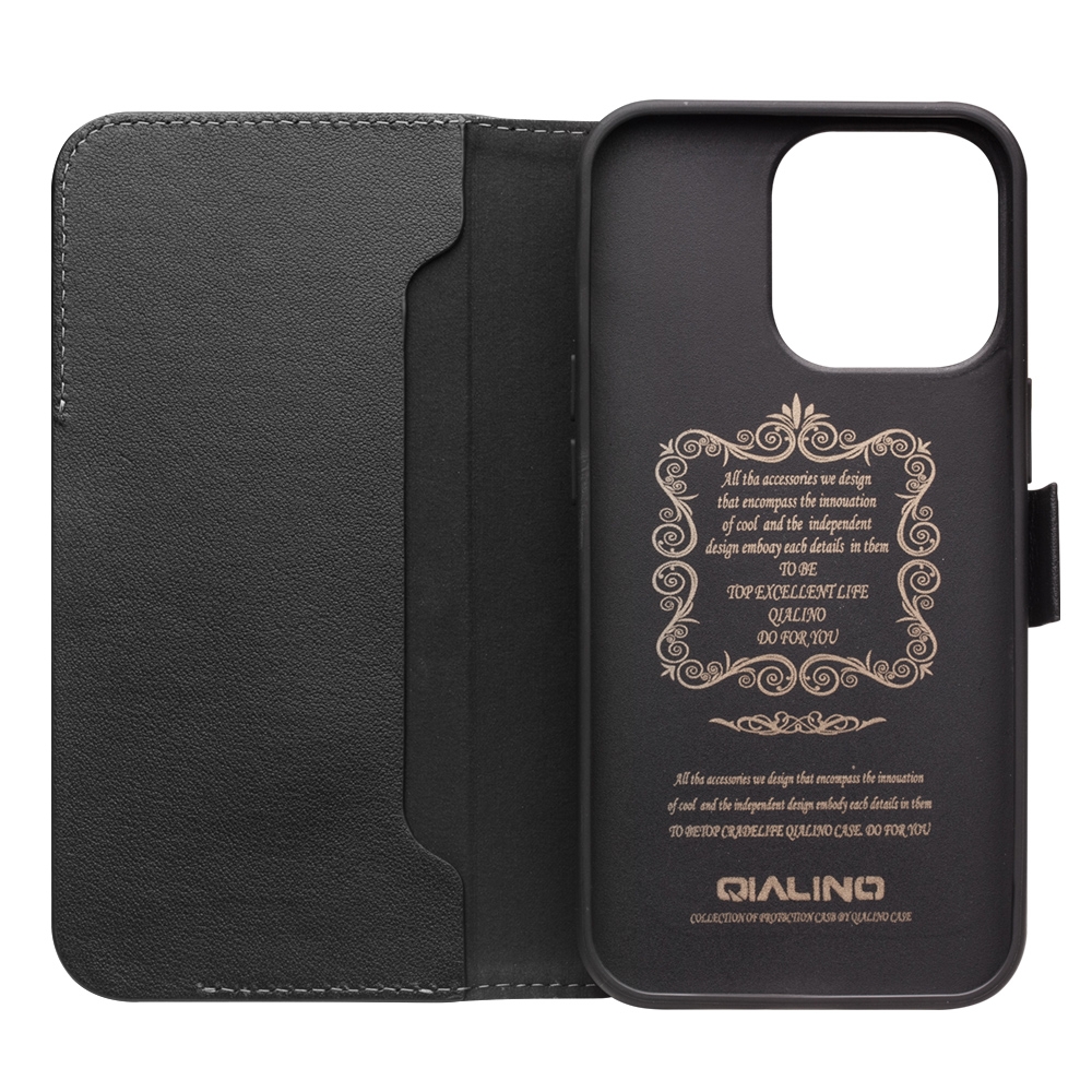 For iPhone 13 Pro QIALINO Magnetic Buckle Leather Phone Case (Black)