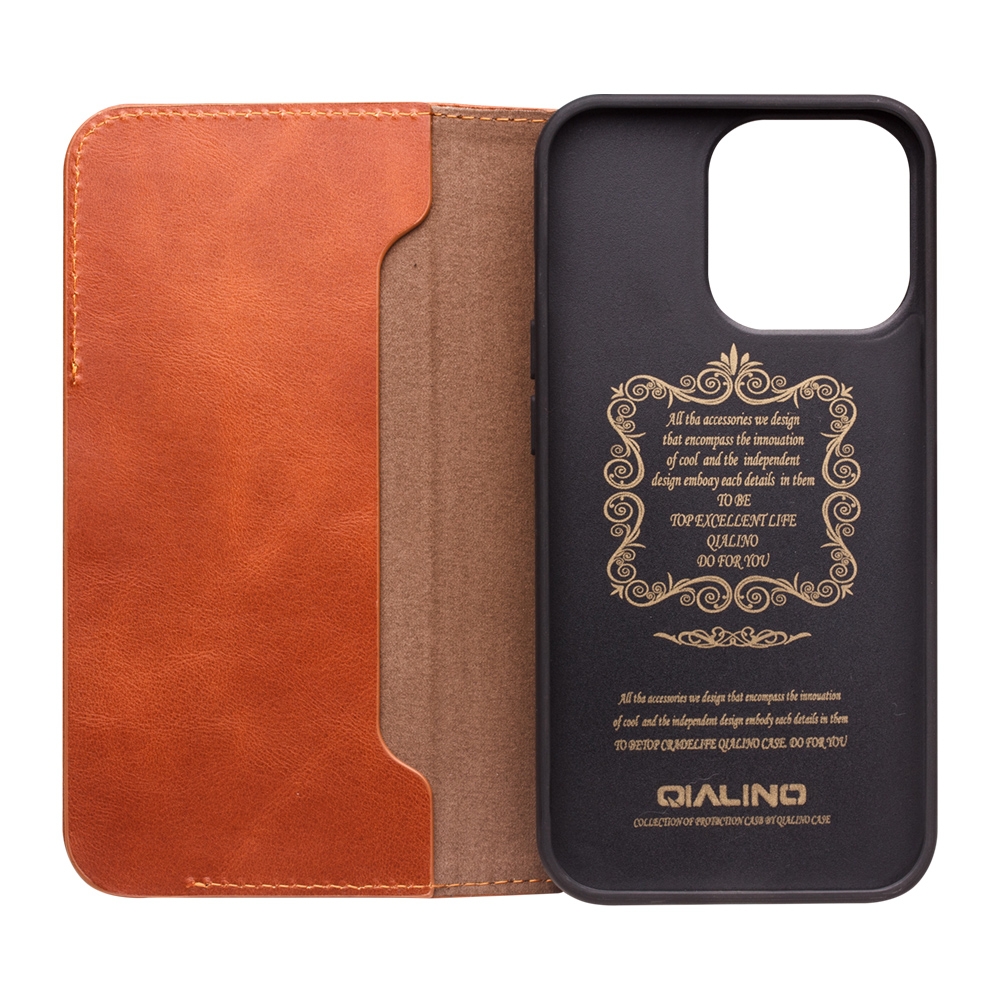 For iPhone 13 Pro QIALINO Magnetic Buckle Leather Phone Case (Brown)